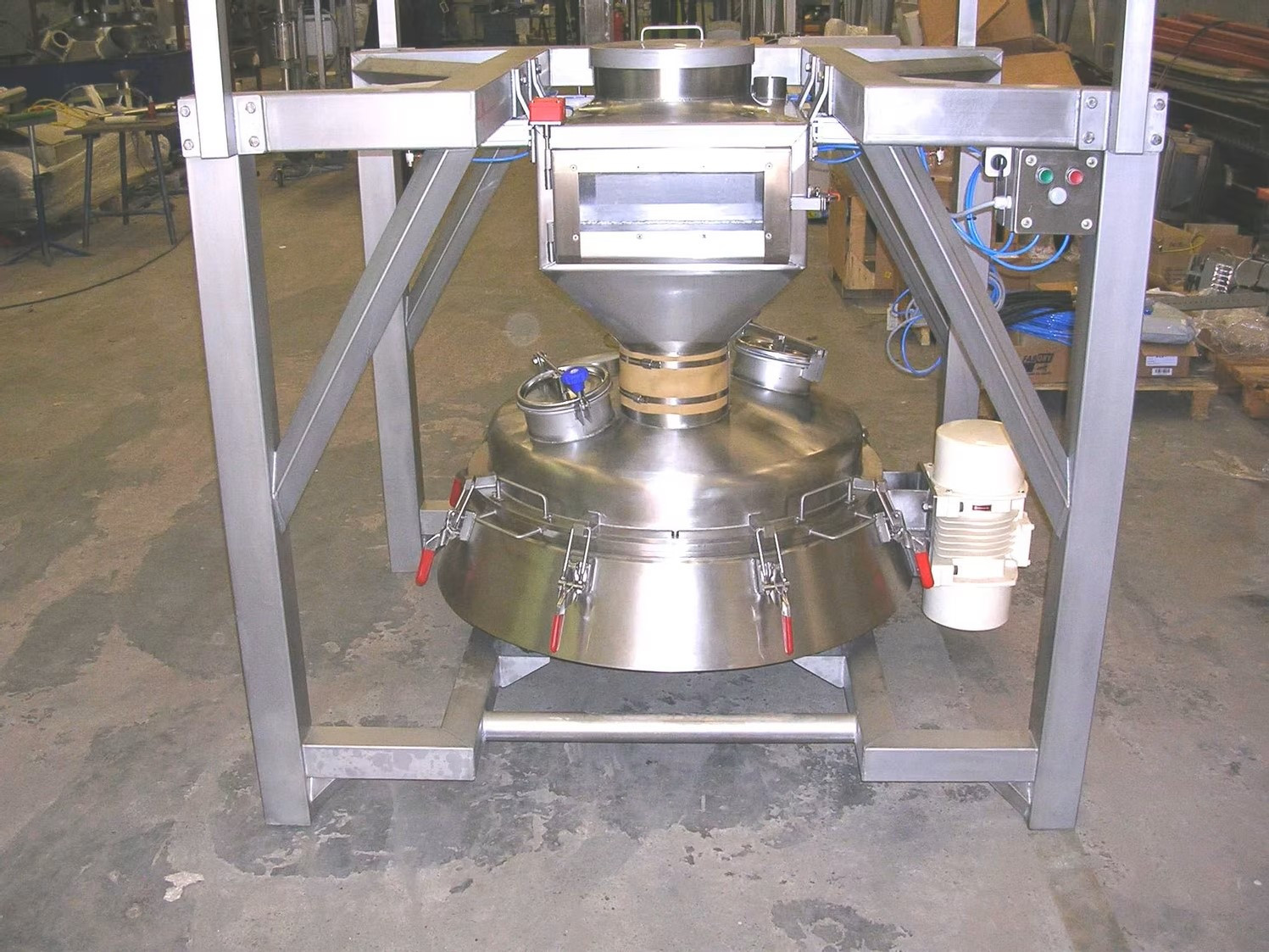 Deze zeefmachine is bovendien geschikt voor CIP-reiniging (Cleaning In Place) en heeft een lage inbouwhoogte, waardoor hij eenvoudig in bestaande productielijnen kan worden geïntegreerd. Optioneel kan de machine worden uitgerust met een hefinrichting, waarmee het deksel omhoog wordt gebracht en kan worden weggezwenkt voor snelle reiniging en inspectie.